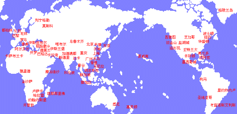 点击地图上相应城市,即可得到这个城市的当前时间......